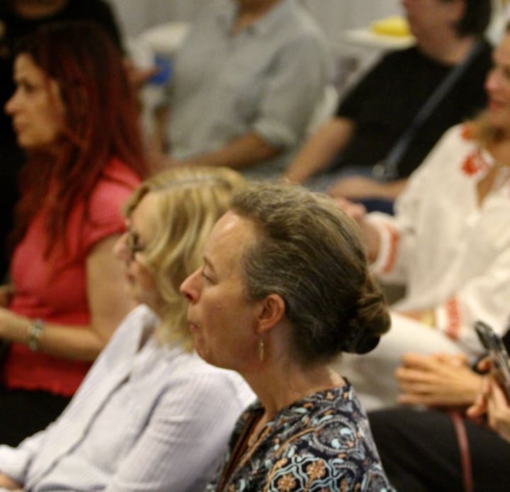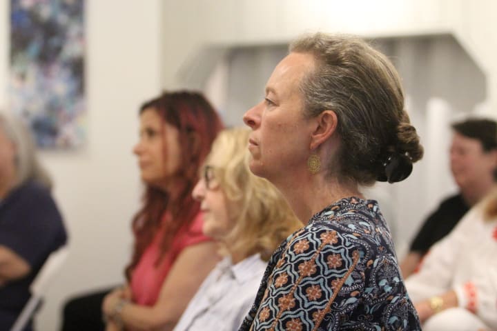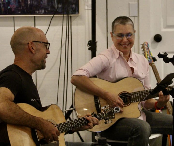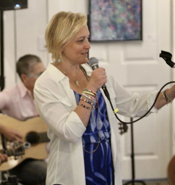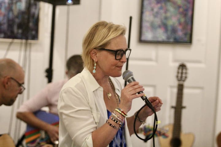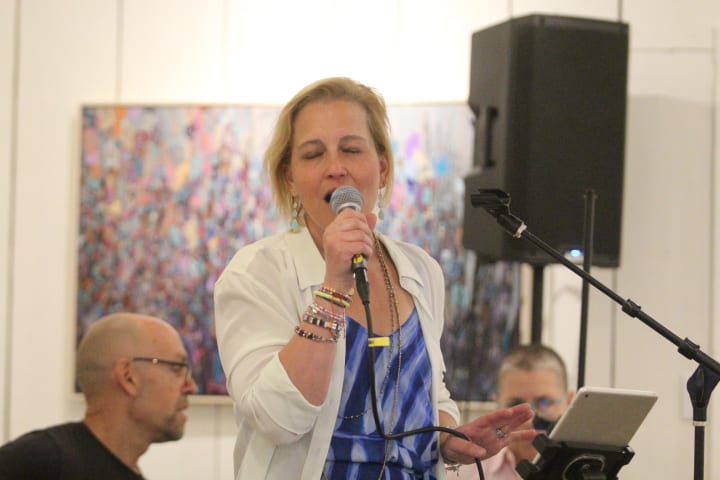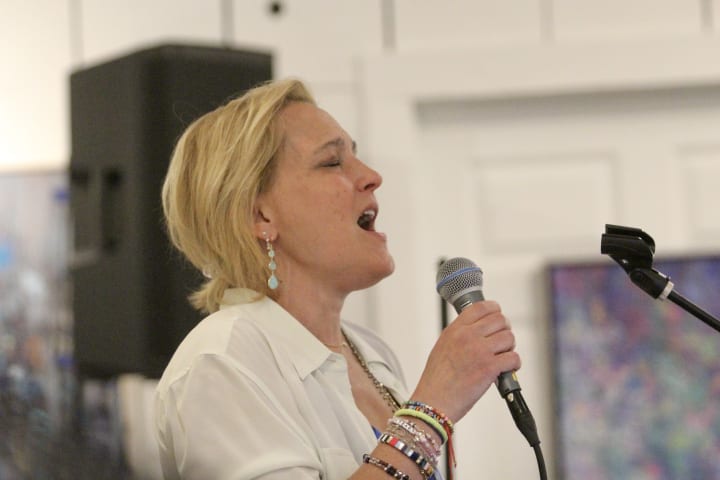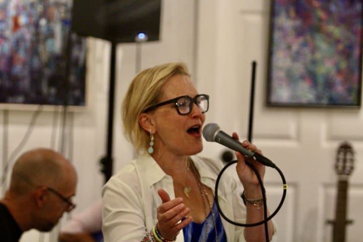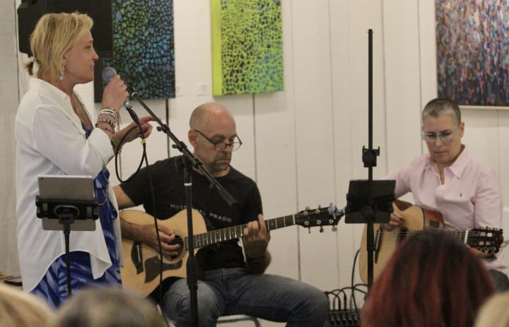 Every Breath You Take, The Girl From Ipanema, Kiss Me by Sixpence None The Richer and Al Green’s Let's Stay Together cascaded the audience into a brief interlude, and Julie Rosenberg gave voice to overall break at hand “Music gives us a chance to relax and unwind,” said the guitar player and Board president of the Katonah Museum Artists' Association.