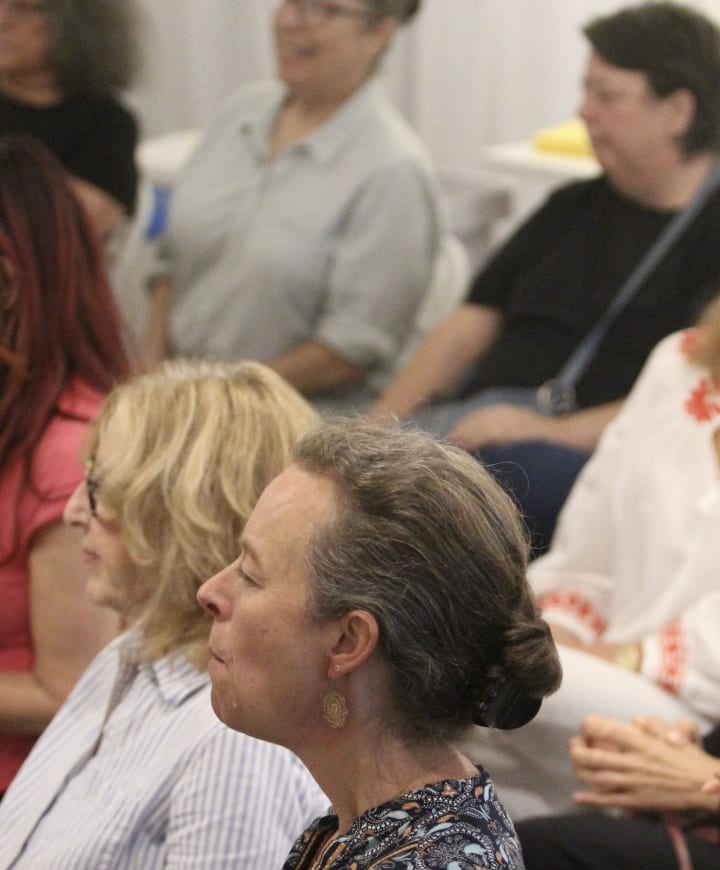 Also in between, Allison Belolan reveled in Robin’s voice, and the perfect setting that facilitated the rise of the melody. “I just love this space, the mission and the community,” said Belolan, who just completed her residency and had several pieces of artwork displayed.