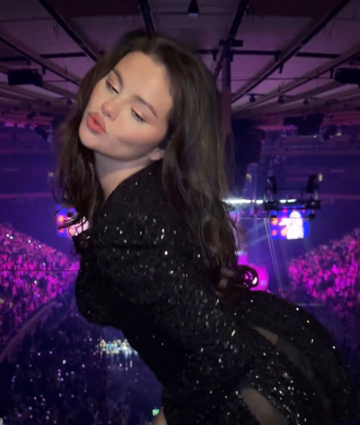 Gomez, 32, was seen enjoying the show from a private box at the famous New York City arena, where she danced and lip-synced to Carpenter’s hits, including "Juno." She looked confident and carefree as she swayed and whipped her hair around, showing off her stylish black outfit and putting her dance skills on full display.