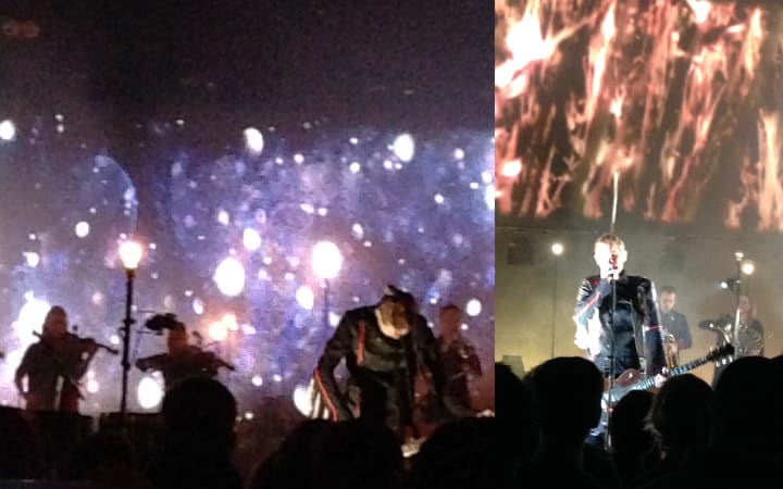 1. Impressive visual element: The visual element of a glowing hula hoop is obvious. But if you're not familiar with Sigur Rós concerts, let me clue you in. They're phenomenal. As if it wasn't enough to be moved by the ethereal falsetto vocals of Jónsi Birgisson (Sigur Rós' lead singer), or by the band's dynamic orchestration, a cinematic video montage plays on screen in the background during the entire concert set. The screen spans the length of the stage. With each new song, a new montage plays. You might see raindrops that sizzle like dancing fireworks. Or an undulating ocean that submerges you in an icy underworld. Either way, the impressionistic montages are inspired, creative, and majestic visual treats.