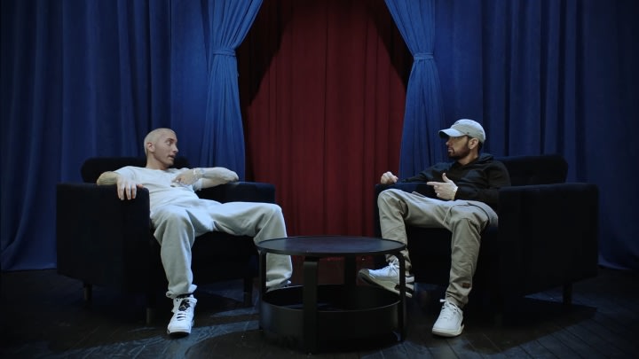 - Breaking News (skit) gives us the results of this havoc, as Slim shows Marshall the news, which cover how Eminem had released an album, where he is trying to cancel himself, as people are protesting and boycotting his music because of his insensitive comments and statements.