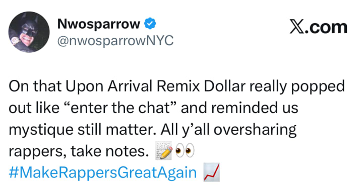 Some records come right when you need them. This one hit my inbox at the perfect time. I have been locked in with the new Clipse album, and Cardi B’s latest album has been in heavy rotation, but Dollar’s “Upon Arrival” remix forced its way onto my playlist without hesitation. It is one of those undeniable records that grabs you immediately and reminds you why rap, at its core, is about energy, hunger, and connection.