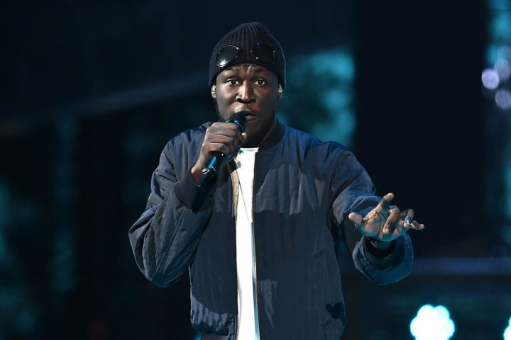 Stormzy performing @ the BRIT Awards in Feb 2017.