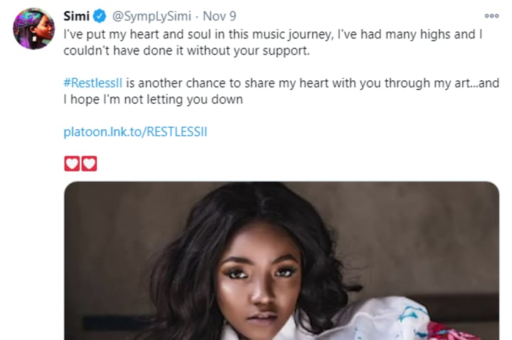 I've put my heart and soul in this music journey, I've had many highs and I couldn't have done it without your support. #RestlessII is another chance to share my heart with you through my art...and I hope I'm not letting you down