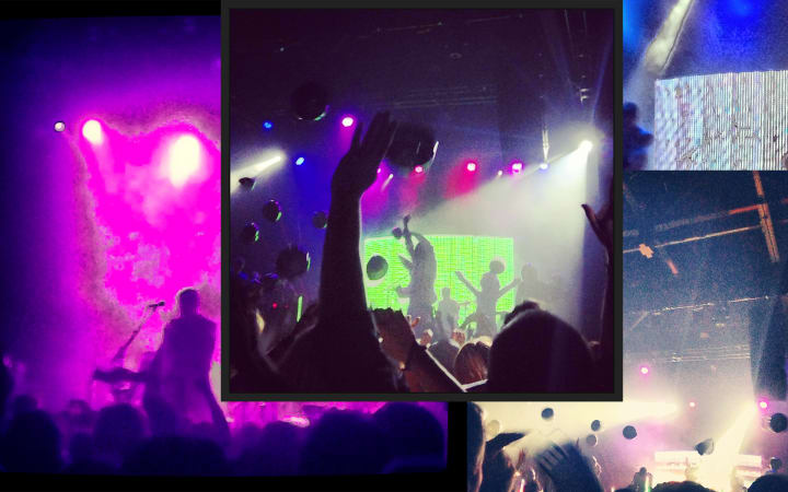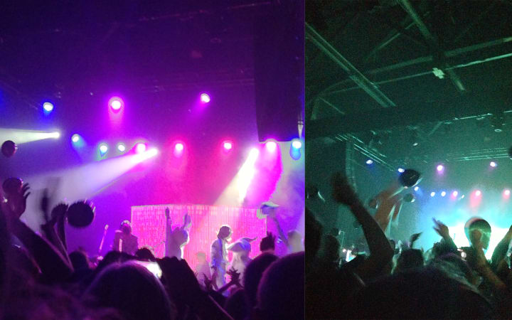 I guess I could've asked to borrow the Adidas throwbacks from the guy in front of me because he clearly wasn't using them. He took his shoes off towards the end of the show. I'm not sure why. Maybe he needed a break from doing the liquid wave. Or maybe a glowstick capsule got stuck between his toes. Either way, his raunchy feet were the only part of the show that stunk.