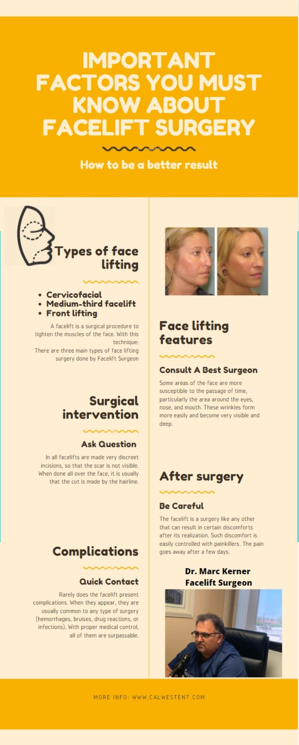 Dr. Kerner is a well known cosmetic surgeon in the USA and medical director of calwestent.com and writer. He wrote many articles related to different health issues of ENT Problem, Rhinoplasty, Facial Filler etc.