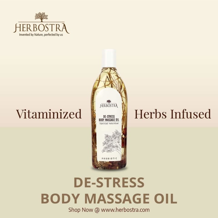 Herbostra’s de-stress body massage oil is the best combination of modern-day Ayurveda. The body oil has been developed organically with herbs infused in the oil. The probiotic technology in the oil helps to nourish your skin for longevity. With the daily use of stress relief oil, you can balance the doshas in the body, strengthen the body muscles and have a healthy skin.