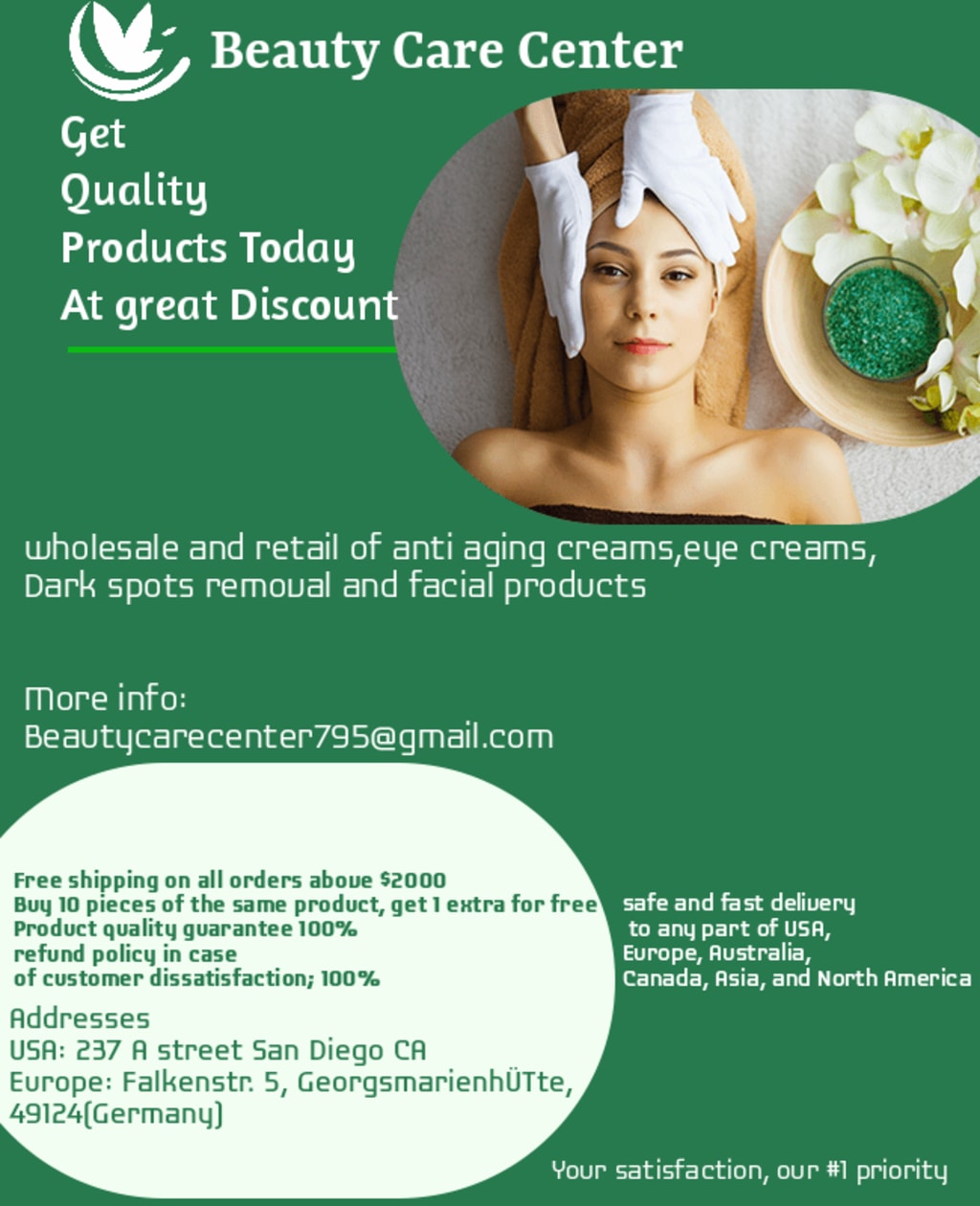 At BEAUTY CARE CENTER, we Work with biggest and reputable manufacturers around the globe. This allows us to guarantee 100% of the products we sell.We can do this because we don’t just resell products like most vendors do (simply reshipping low standard products) but we order top quality products we require in bulk.