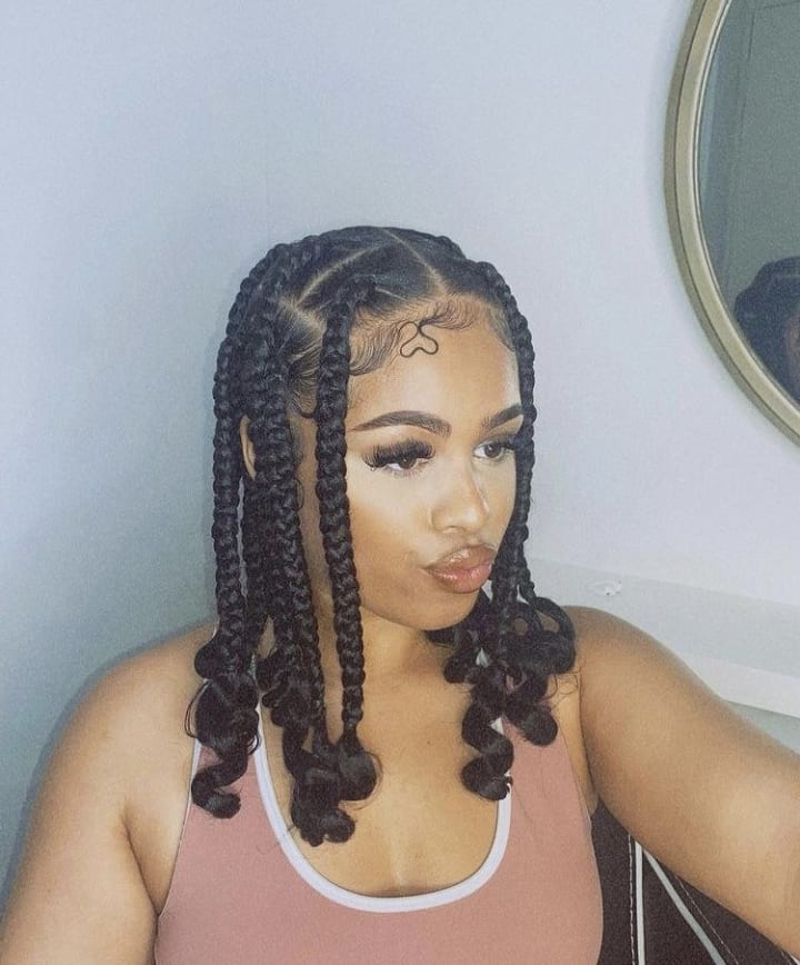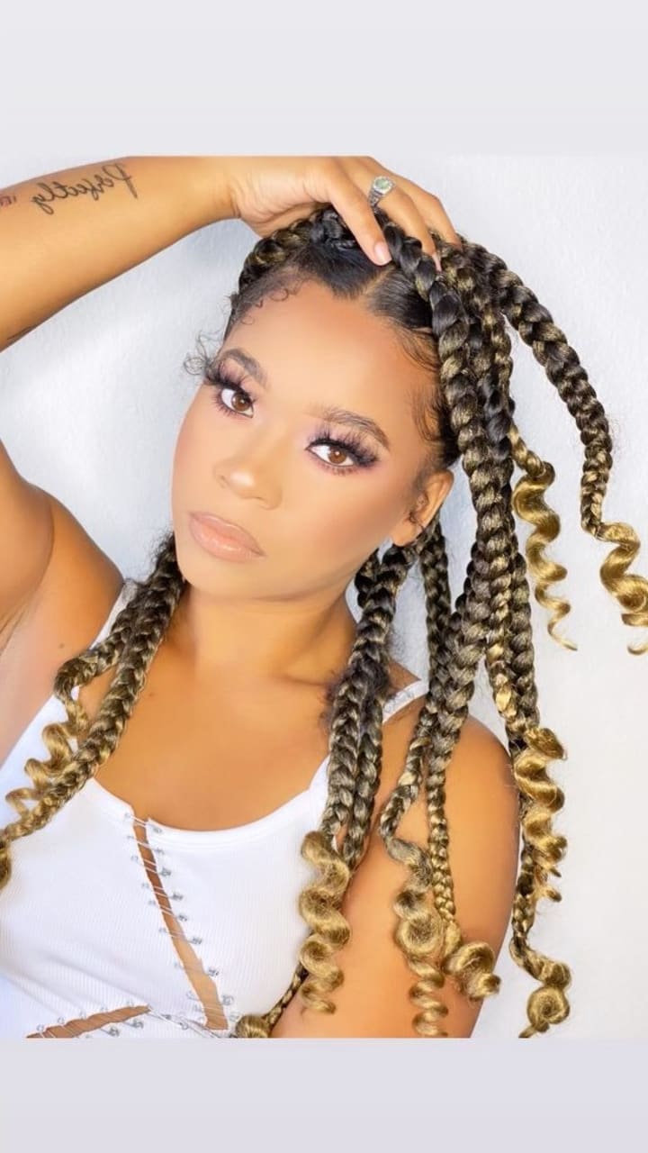 Coi Leray braids are just a hairstyle that involves tying your hair up in braids. But unlike the routine braids that you do, these involve tying your hair in jumbo knotless braids. The ends of the hair are left curly.