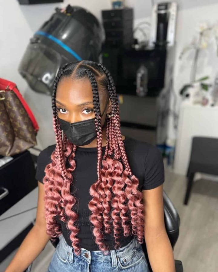 The best thing about medium jumbo Coi Leray braids is that it makes your hair look voluminous. Since there aren’t many curls at the bottom, the look is cleaner. Don’t forget to apply the hair serum and hair gel to make it look meticulous.