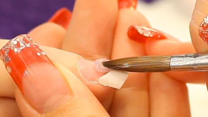 Allow the acrylic to dry. This should take anywhere from three to five minutes. You know it’s dry when you take your brush and tap the nail and the nail makes a clicking noise.