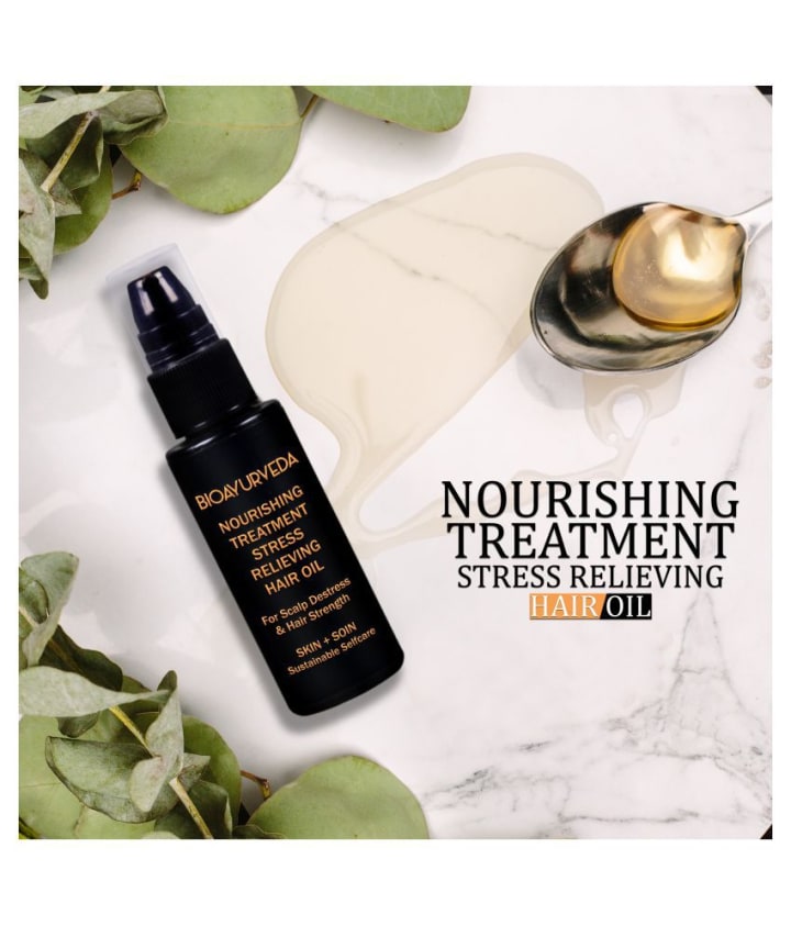 • The BIOAYURVEDA NOURISHING TREATMENT STRESS RELIEVING HAIR OIL is a completely natural, whole Ayurvedic oil. That has no artificial oil mineral oil, Parabens or other chemicals as it is committed to zero synthetics policy.
