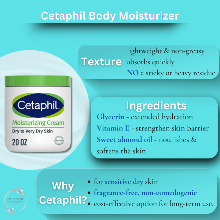 For Sensitive Skin: Cetaphil Body Moisturizer is the go-to for those with sensitive skin due to its fragrance-free, non-comedogenic formula.