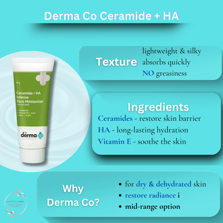For Lightweight, Long-Lasting Hydration: Derma Co Ceramide + HA Daily Face Moisturizer offers effective hydration without a heavy feel, ideal for dull or dry skin.