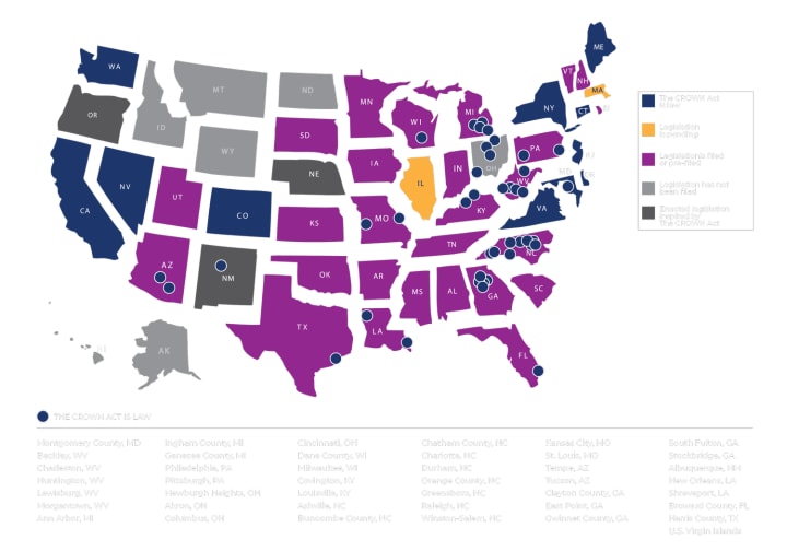 Several states have already implemented their own versions of the CROWN Act. On March 17th, 2022, Massachusetts became the latest state to pass a local ban on hair discrimination. Yet, with 15 states down and 35 to go the task is still an uphill battle.