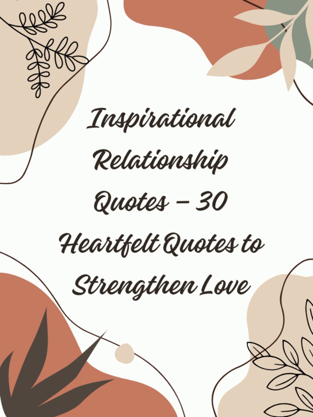 Find 30+ inspirational relationship quotes that will warm your heart and strengthen your bond. Let these words inspire love, trust, and deep emotional connections.