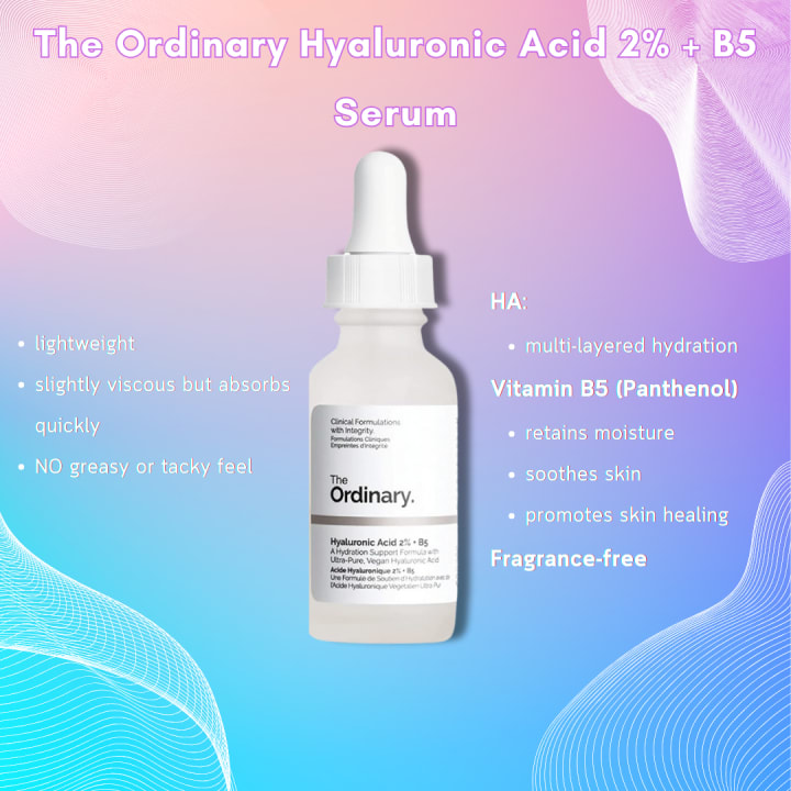 - Looking for an affordable option? The Ordinary Hyaluronic Acid 2% + B5 is a budget-friendly serum that doesnโt compromise on quality. Itโs a great choice for anyone who wants a simple, no-frills product that works for all skin types.