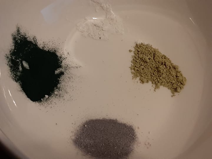 With the sea vegetables researched and selected, they are ground and a gram of each is added to the mixing bowl.