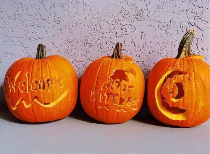 Pumpkins carved with some words is a good idea for the Halloween party. Image: Instagram @alexabri