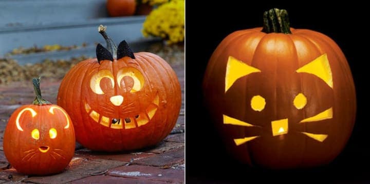 You'll Surely Catch Your Cat's Attention With Furry Friends Carved On Pumpkins. Image: Pinterest