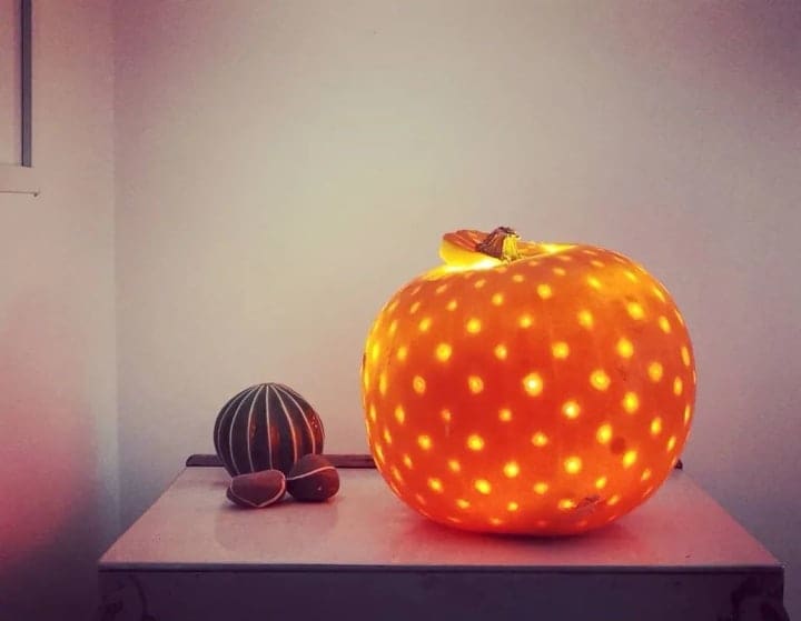 There is something very soothing to the eye about Jack-o'-lanterns made with a power drill. Image: Hometalk