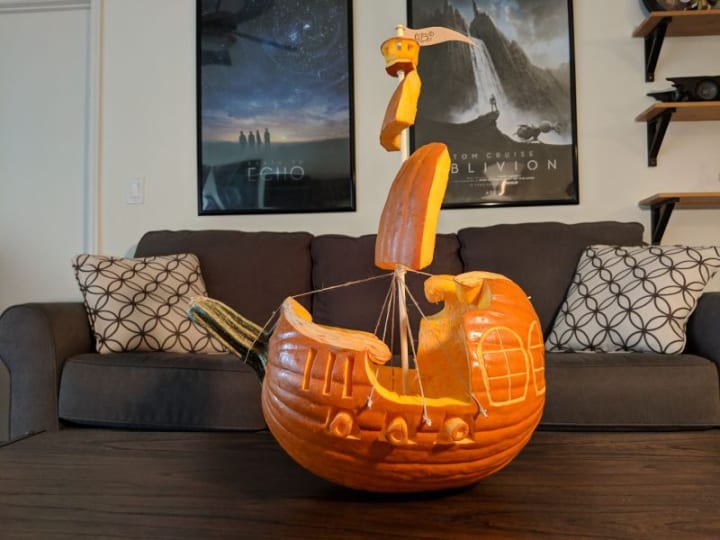 Bring out the inner pirate spirit in you by carving a pumpkin in the shape of a Pirate ship for a night of fun and entertainment. Photo by Artstation/Josh Jaillet