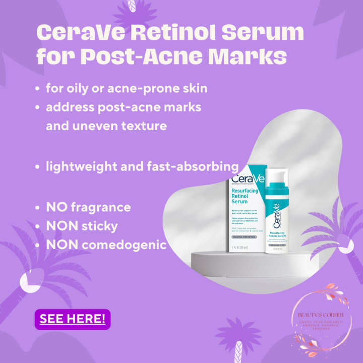 - For Acne-Prone Skin or Post-Acne Marks: The CeraVe Retinol Serum for Post-Acne Marks excels at resurfacing and refining skin texture, making it a top choice for those with acne scars.