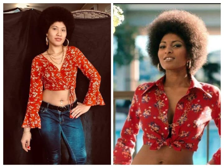 With some convincing by Mom here, my daughter gave me permission to enter her costume in for this contest. My daughter, Blessed, portrays Foxy Brown to the tee! Although her outfit is more of a rendition from the film Coffy, my child’s interpretation of Pam Grier is nothing short of stunning. She is a natural beauty with an absolutely gorgeous afro. She certainly does the 70’s justice with her depiction. While there is great likeness to Foxy, my daughter’s inspiration for her look did not initially come from Pam Grier or any of her movies. My daughter was looking for a costume where she could comfortably wear her natural hair. Upon recommendation of my oldest daughter, Blessed was thrilled to represent Grier’s Fro and be foxy.