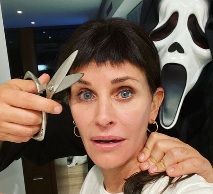 We all know Courteney Cox from Friends and the Scream series. We also all remember her bad haircut from Scream 3! I love it when celebrities are able to have fun with some of their not-so-best moments.