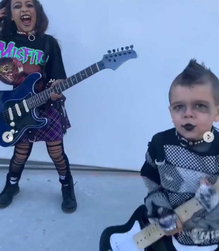 Reign Disick and North West as Rockstars