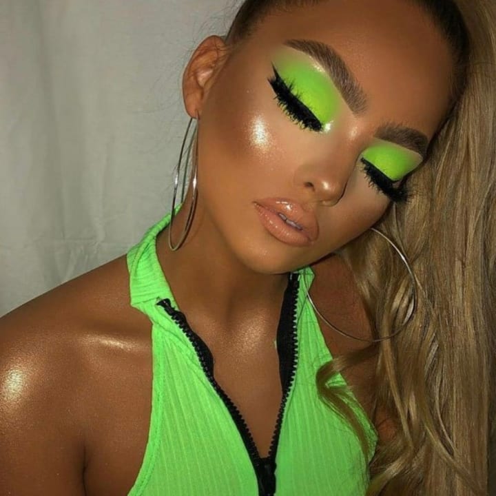 More, More and More. To the eyes, it brings out the glow. You're definitely on trend with graphic lines and negative space in a neon shade, or wear two if you dare. Why wait until summer to release Electric Blue, Neon Green and Hot Pink eyeshadows? To get the Prabal Gurung model's look, start with a base of MAC Lipmix (if you also have a Shimmer Pigmented Cream Eyeshadow), then with a matte powder pigment in one of the shades above.