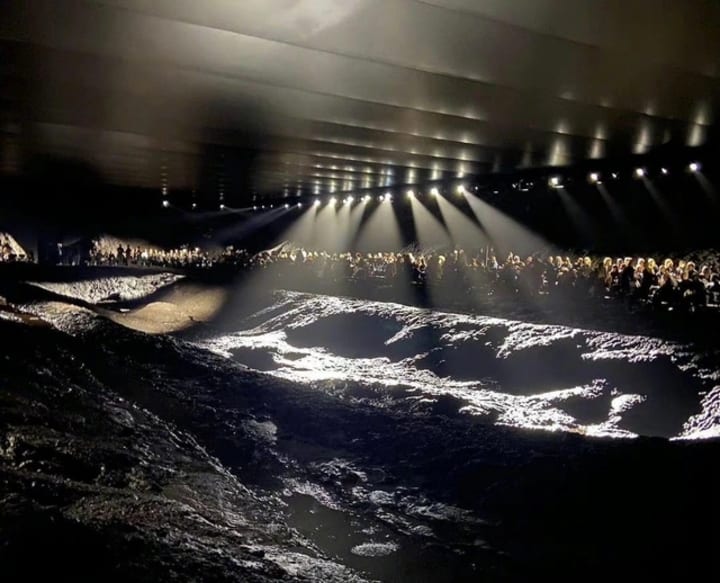 This eerie picture below, is not in the middle of nowhere, nor the coal mining site, but in the so-called global fashion center of the Paris Fashion Week show site.
