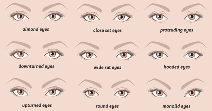 - Brown eyes: cream or brown shadow with black mascara and eyeliner