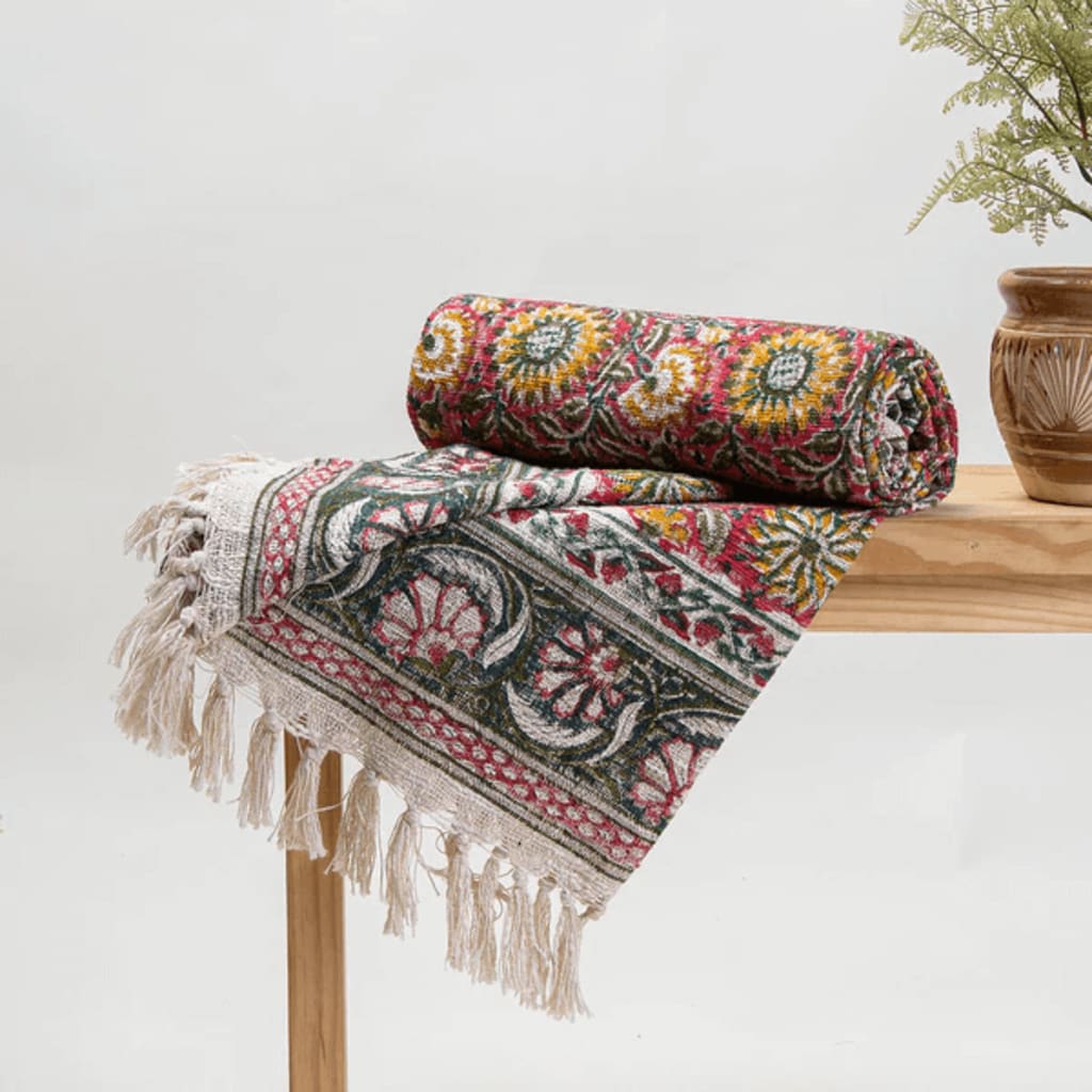 For those who prefer a bolder statement, patterned throw blankets are a great choice. Geometric shapes, floral prints, and abstract designs are making a comeback, adding vibrancy to contemporary homes. Block-printed throw blankets, in particular, have gained popularity due to their unique patterns and artisanal craftsmanship. These prints can easily become the focal point of your living room, adding character and personality to any sofa.