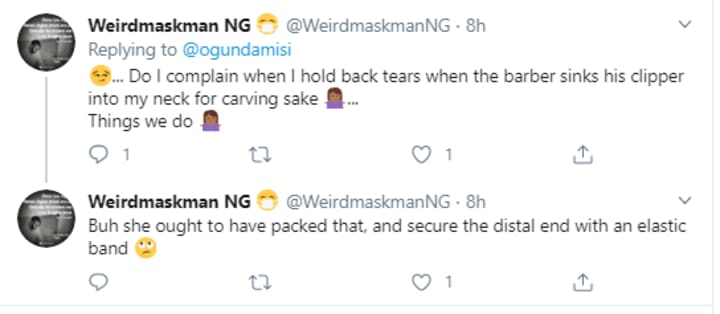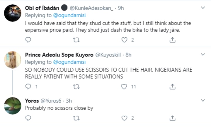 SO NOBODY COULD USE SCISSORS TO CUT THE HAIR, NIGERIANS ARE REALLY PATIENT WITH SOME SITUATIONS