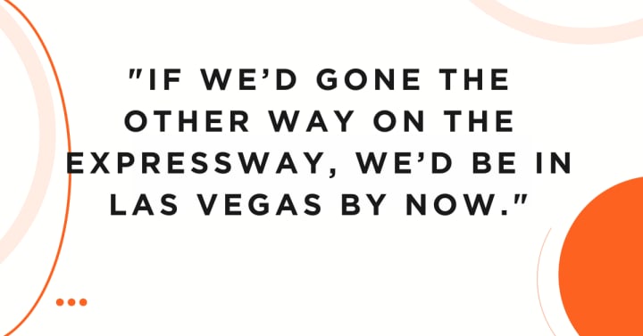 "If we’d gone the other way on the expressway, we’d be in Las Vegas by now."