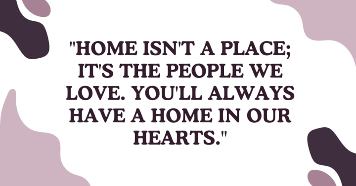 "Home isn't a place; it's the people we love. You'll always have a home in our hearts."