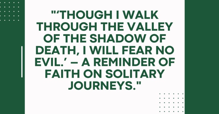 "‘Though I walk through the valley of the shadow of death, I will fear no evil.’ – A reminder of faith on solitary journeys."