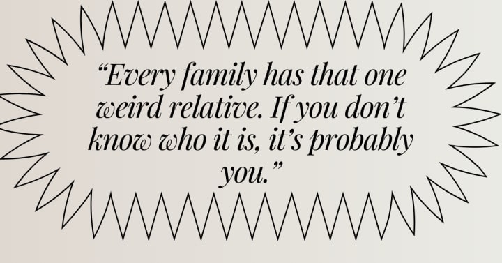 “Every family has that one weird relative. If you don’t know who it is, it’s probably you.”