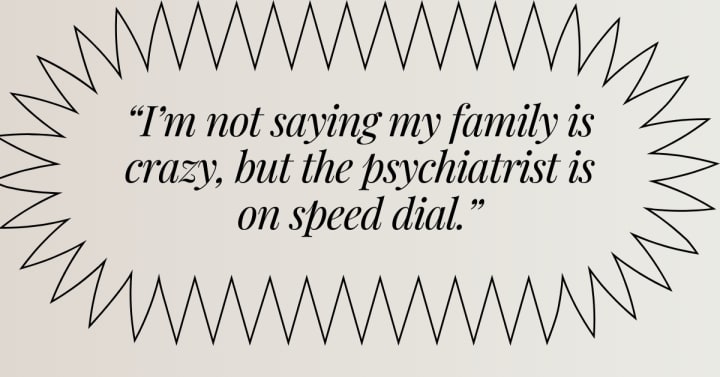 “I’m not saying my family is crazy, but the psychiatrist is on speed dial.”