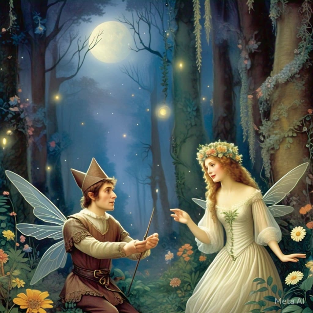 But this forest was no ordinary place. It was a realm of fairies, ruled by the mighty Oberon and his queen, Titania. These two powerful beings were in the midst of a bitter quarrel over a changeling boy that Titania refused to give up to Oberon.