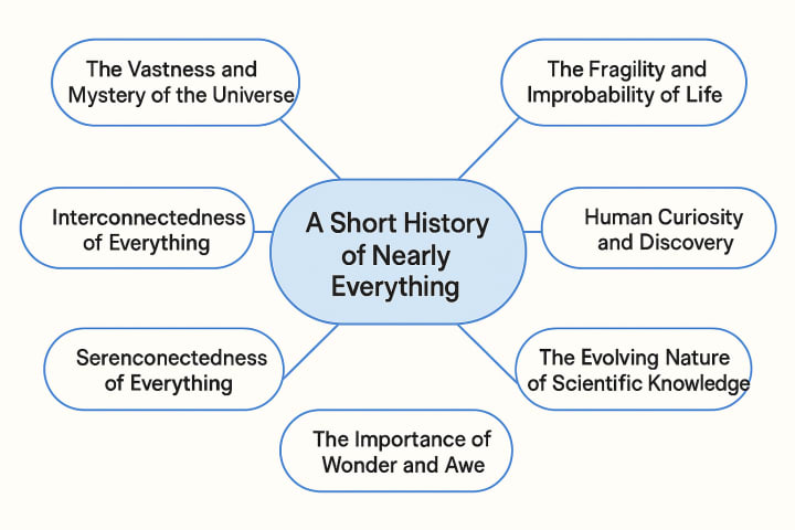 Bill Bryson's A Short History of Nearly Everything touches on many fascinating ideas, but here are some of the key themes that stand out: