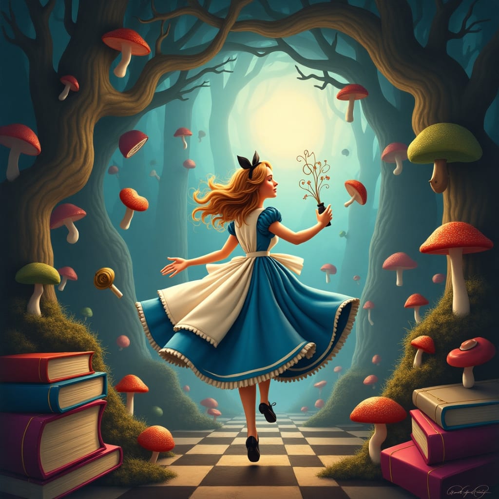 Alice was back on the riverbank beside her sister, the sunlight soft on her face. It had all been a dream—a vivid, wild, delightful dream. But the sense of wonder lingered, as did the feeling that sometimes the world was not so logical, and maybe that wasn’t a bad thing.