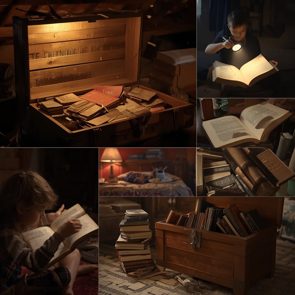 Still, curiosity is a stubborn companion. Every chance I got, I went back to that trunk. Sometimes I only lifted the lid for a moment, enough to see the covers and trace the embossed letters with my fingertips. Other times, when I was lucky, I smuggled a novel out beneath my sweater and read it in the attic by flashlight.