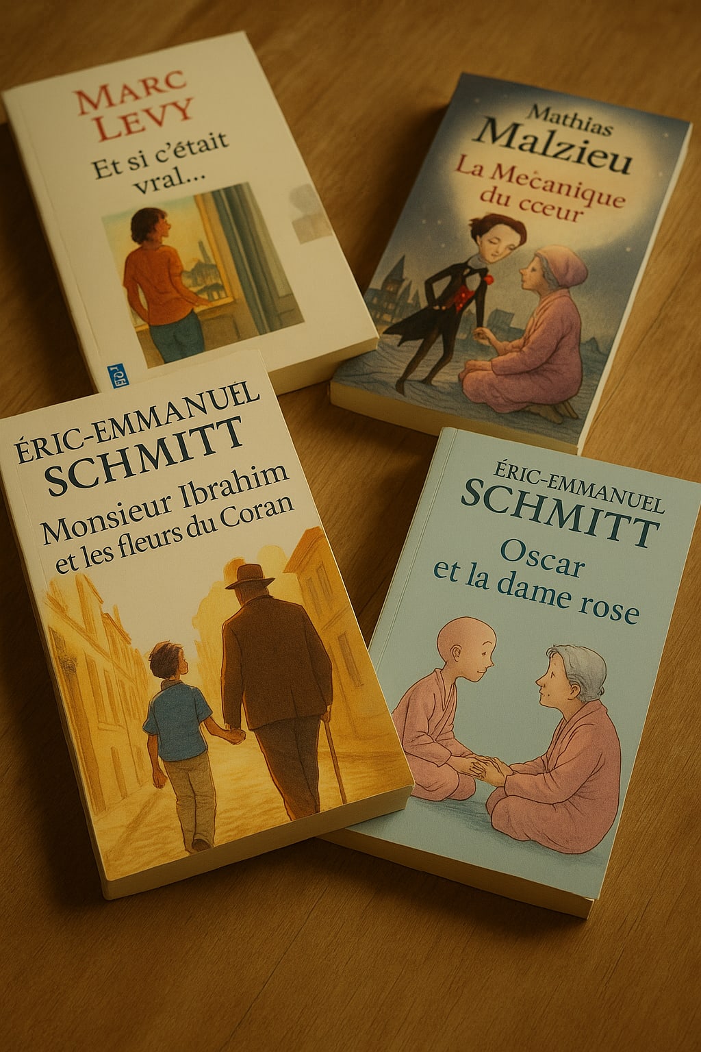 Let’s start with a jewel: “Oscar et la dame rose” by Éric-Emmanuel Schmitt. This short novel tells the story of Oscar, a ten-year-old boy with leukemia, who writes letters to God during the last days of his life. Don’t worry—it’s not depressing. It’s funny, tender, and strangely uplifting. Schmitt’s language is crystal-clear and his storytelling is full of life lessons. Every page offers vocabulary you can actually use, and emotions that stay with you long after the book ends.