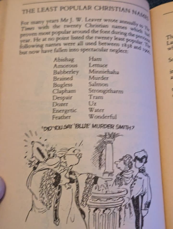 I also like the least popular Christian names, sorry it's a bit blurry.