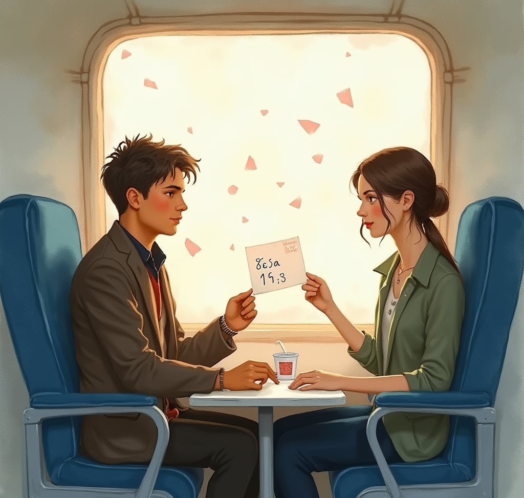 The conversation flowed so naturally that time felt like it was bending. The world outside faded, and all that was left was the soft rhythm of the train, the shifting golden light through the windows, and us.