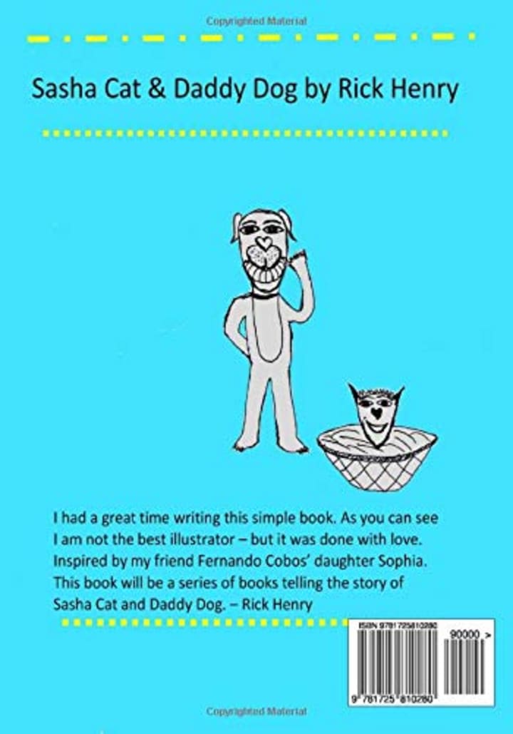 The first book was released on August 23, 2018 and was inspired by my friend Fernando’s daughter, Sophia. This little book is a wonderful introduction telling the story of how Sasha Cat and Daddy Dog met.