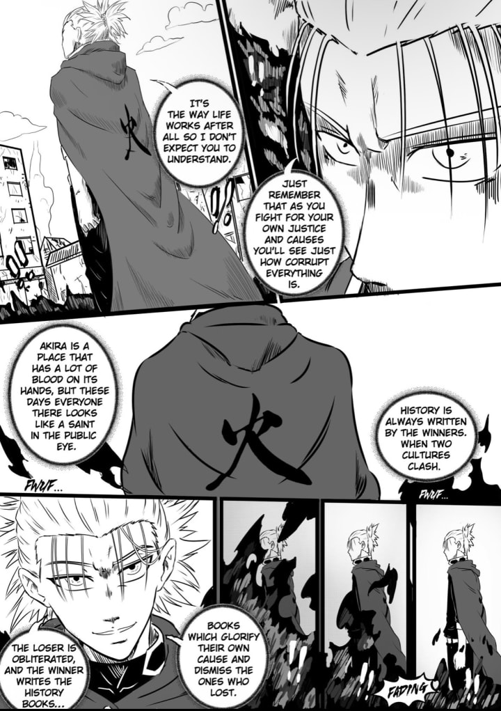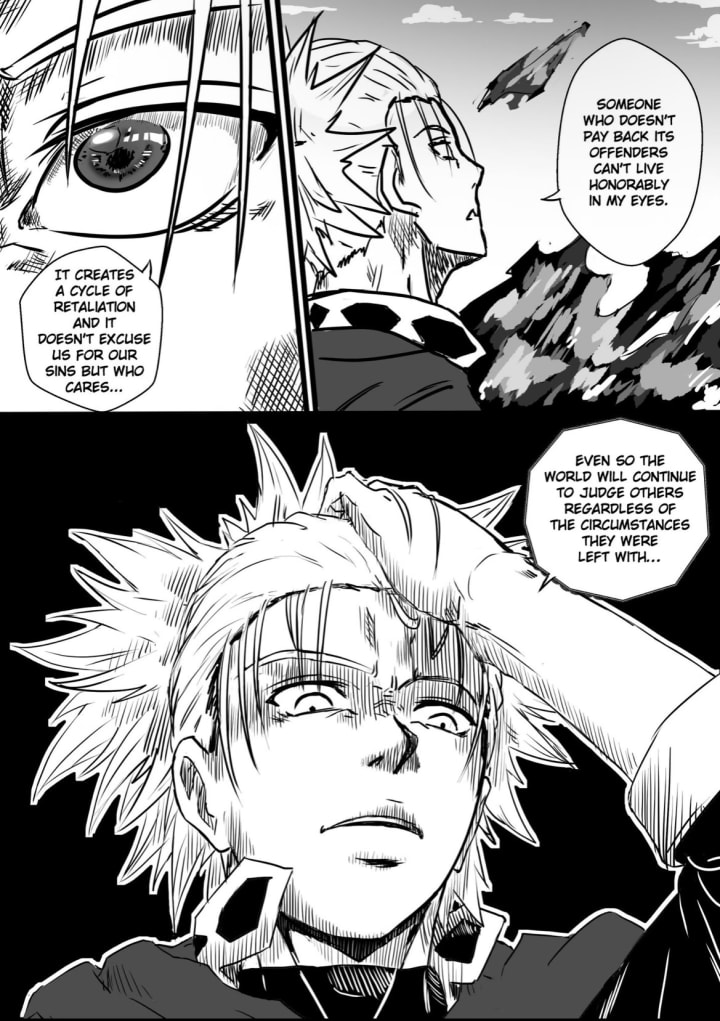 Two stories exploring concepts such as humanity, morality, coexistence, and hate beyond the battles