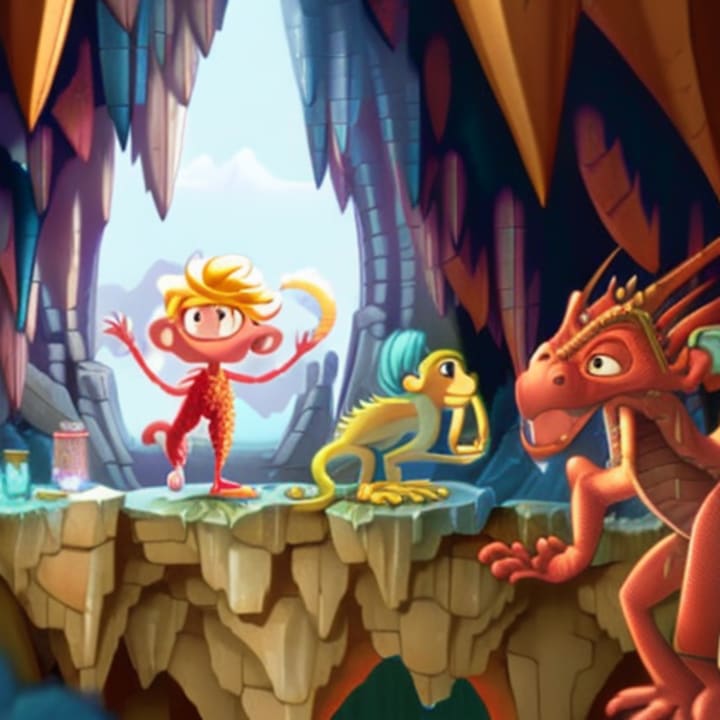 Intrigued by the shiny objects, Gragon flew towards the village, leaving his lair unguarded. Seizing the opportunity, Milo and his monkey friends rushed inside the lair. They found a magical crystal that had the power to weaken the dragon. With all their strength, they hurled the crystal towards Gragon, hitting him right in the heart. The evil dragon let out a deafening screech and collapsed, defeated.